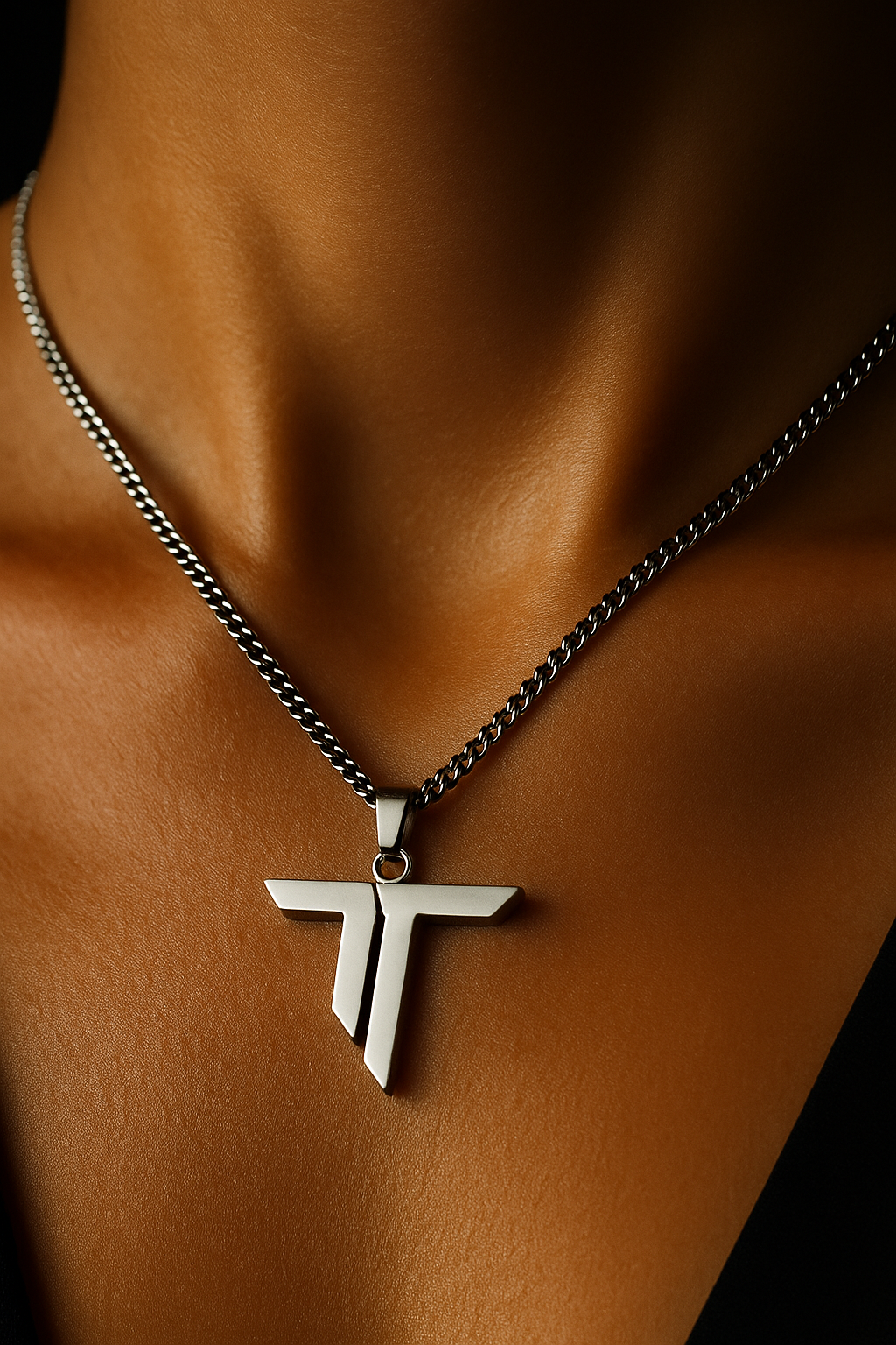 -Hochwertige Tom Twers „Logo“ Halskette in Silber aus Edelstahl.